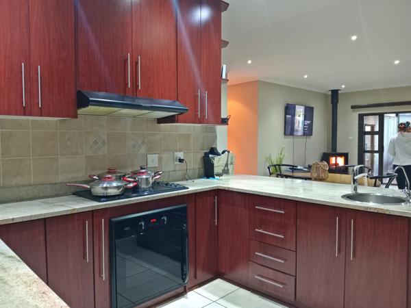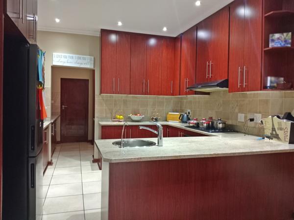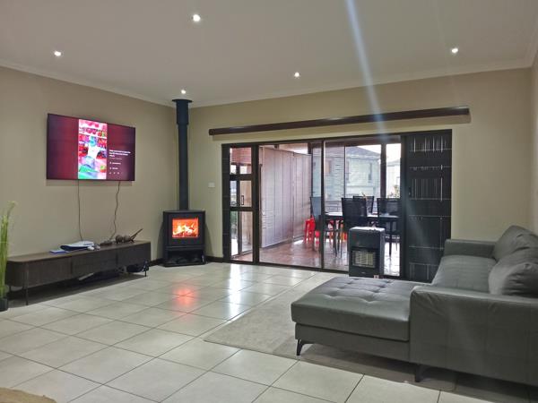 Outside, enjoy year-round entertainment in the covered patio area complete with a built-in braai and sliding doors to keep the winter chill at bay. The neatly maintained garden offers ample space for kids and pets to play, and the automated double garage with a paved driveway adds to the homes comfort and convenience.