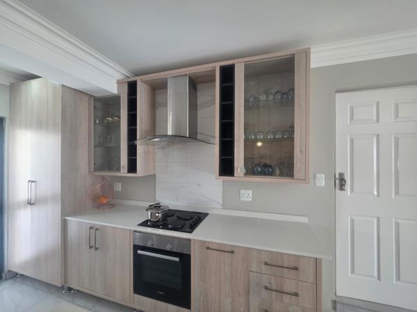 Step into effortless elegance with this stunning 4-bedroom, 3-bathroom townhouse in sought-after Shellyvale, offering cell-to-gate access for peace of mind and prepaid water and electricity for convenience. From the beautifully designed loft with exposed beams, laminated floors, and a private balcony, to the stylish main bedroom featuring a walk-in closet and luxurious ensuite with an oval bath, every detail reflects contemporary comfort. Entertain in style with two spacious lounges one flowing to an enclosed entertainment area with a built-in braai and stack doors. The modern kitchen is a showstopper, boasting Caesarstone countertops, a center island, and space for your double-door fridge and dishwasher. Additional perks include a double tiled garage with built-in cupboards and washing machine connection, visitor parking, and secure living in an exclusive complex. Dont miss this unique blend of space, charm, and functionality your dream townhouse awaits!