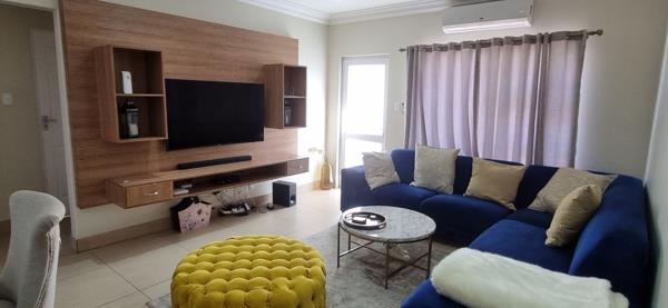 The expansive main bedroom can easily fit a king-size bed, and the two additional bedrooms are spacious too, making this a comfortable home for the whole family. The property features two full bathrooms, including a generous main en-suite with a twin vanity. The bright, open-plan lounge is completed by a stylish wall unit and an air conditioning unit, which ensures year-round comfort.