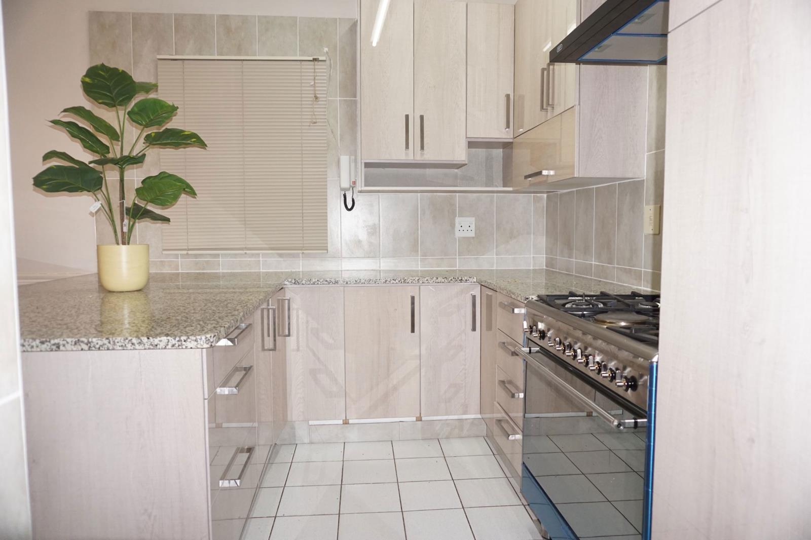 Spacious Living: Step into a well-appointed kitchen with ample cupboard space, granite tops, gas/electric stove with an extractor fan, a space for your fridge, dishwasher and washing machine. Furthermore there is a door that goes to the garage from the kitchen. The kitchen is semi-closed to the cozy living/dinning area that has a sliding door to the neatly paved private yard.