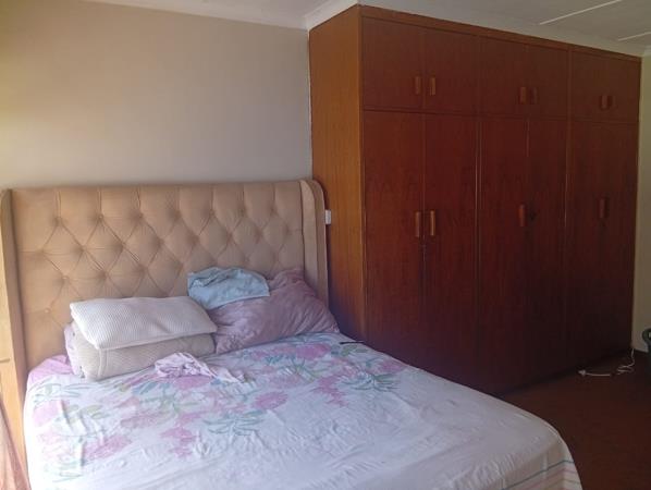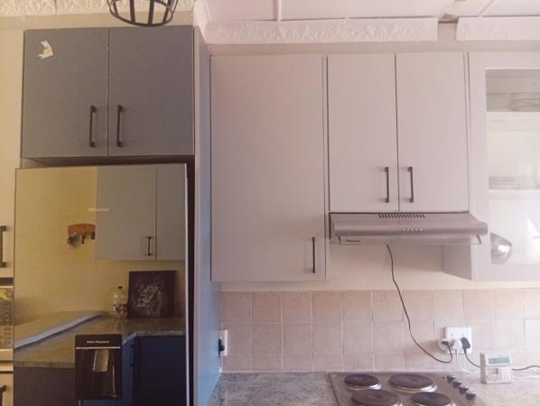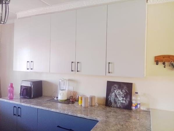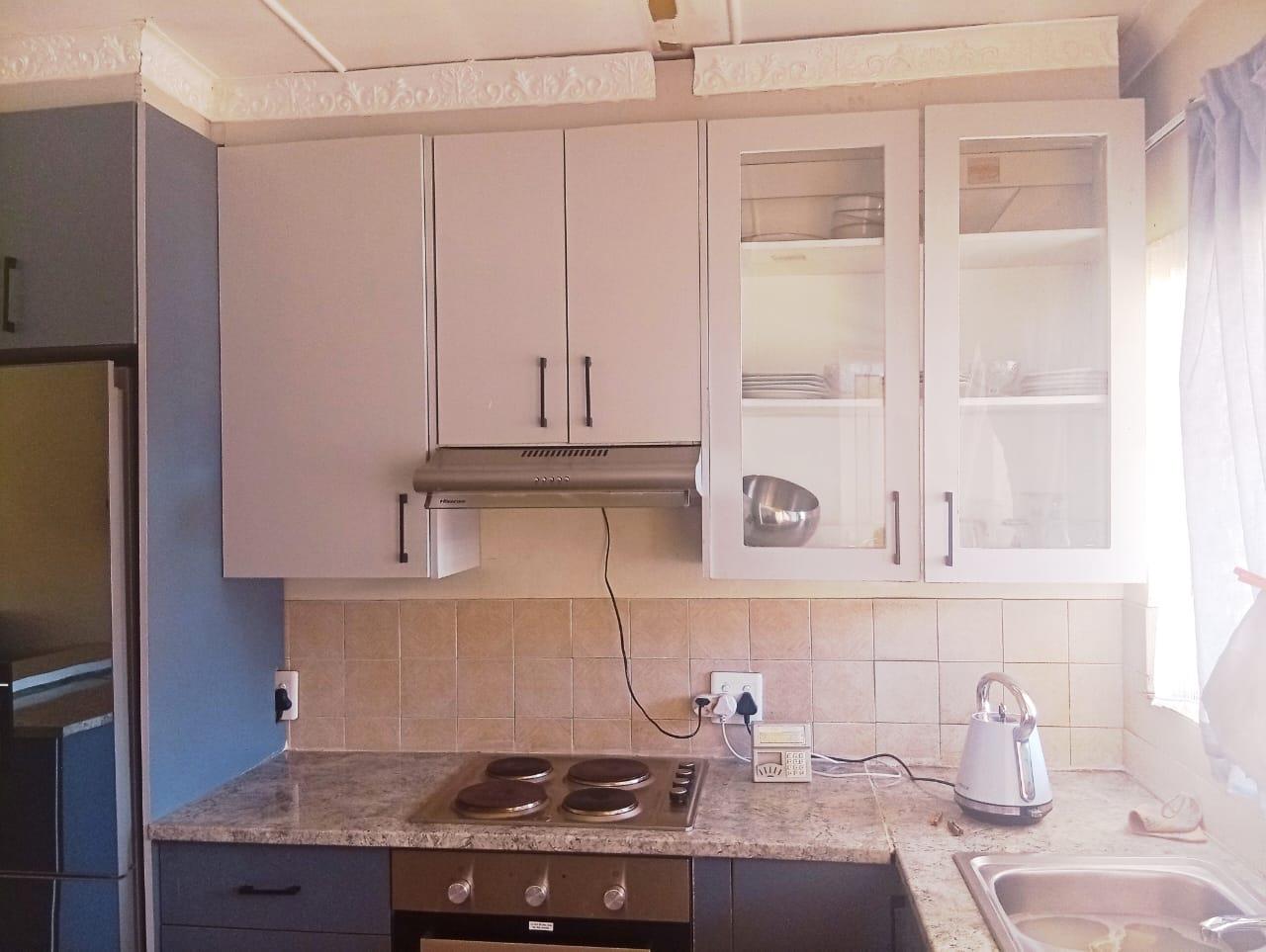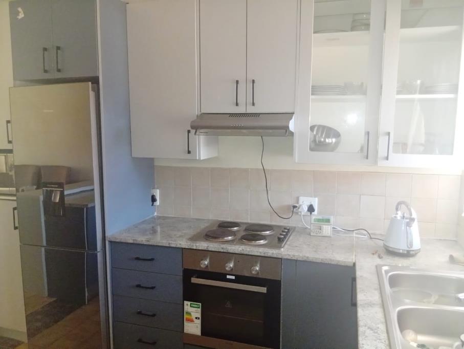 The property offers two bedrooms with built-in cupboards, a neat bathroom fitted with a toilet and basin, and a modern kitchen featuring built-in cupboards, granite countertops, an oven, hob, and stove.