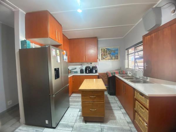 Step outside to an entertainers dream: a covered patio, thatched lapa with a built-in braai overlooking a sparkling swimming pool, ideal for relaxing weekends and summer gatherings. An outside toilet adds extra convenience for guests, while the garage and a covered parking ensures secure parking.