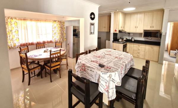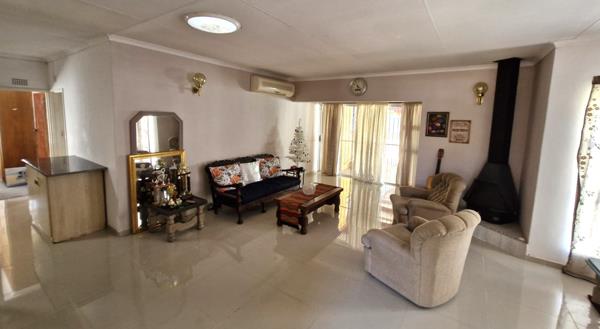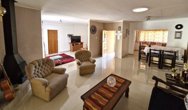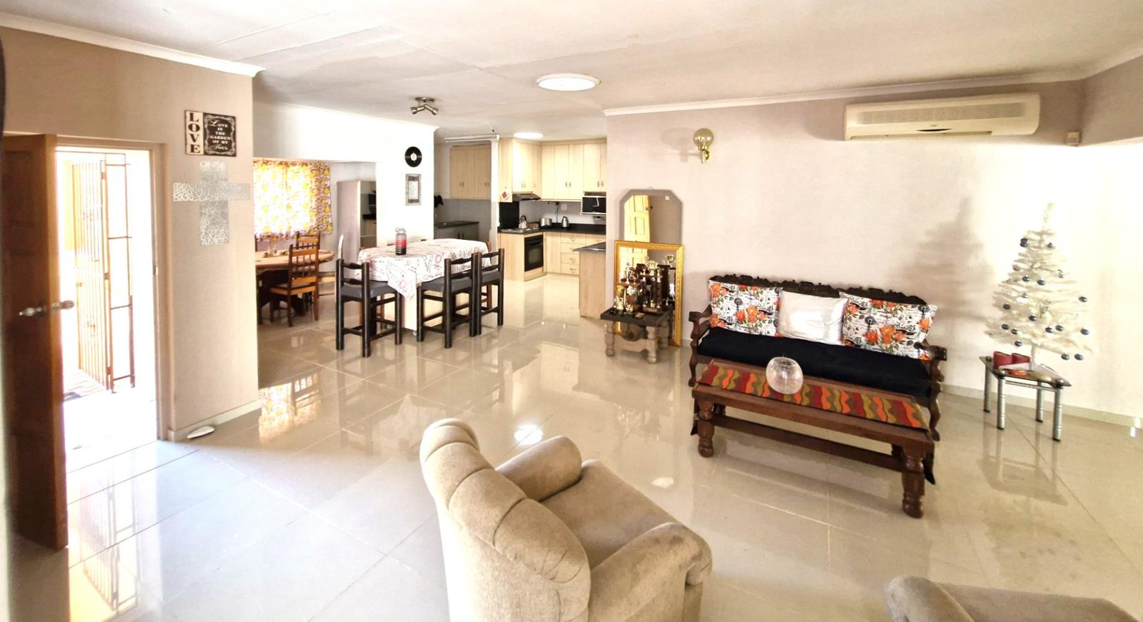 A sliding door from the TVFamily room leads to an outdoor area with a built-in braai and a sparkling pool.