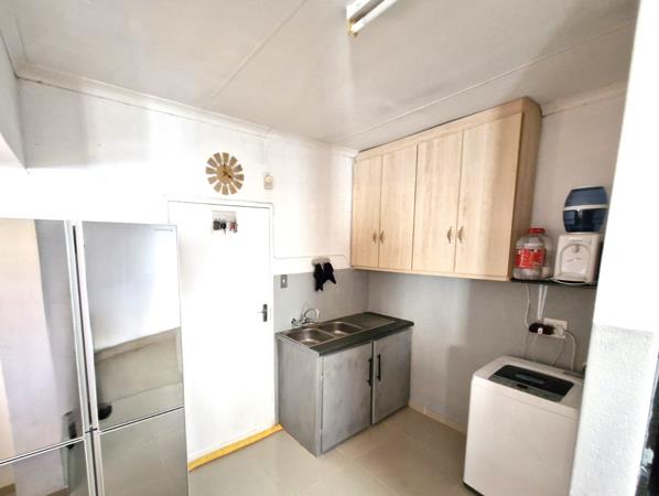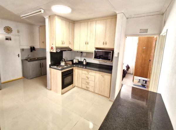 The flat boasts ample built-in cupboards, air conditioning, and a generously sized kitchen.