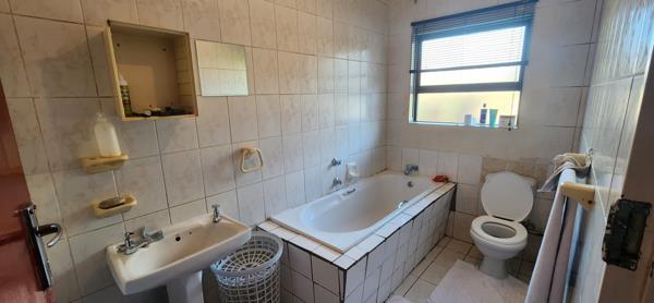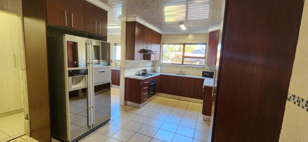 In Pellissier, Bloemfontein, this 4-bedroom, 3-bathroom home offers modern living with a double garage and a carport for two additional cars. The spacious kitchen, with modern appliances and a large island, flows into a cozy TV room, perfect for family time.