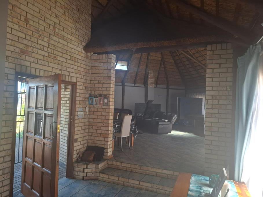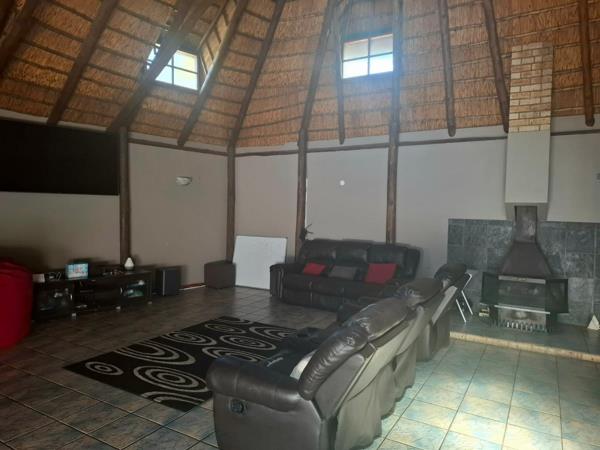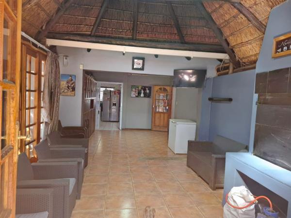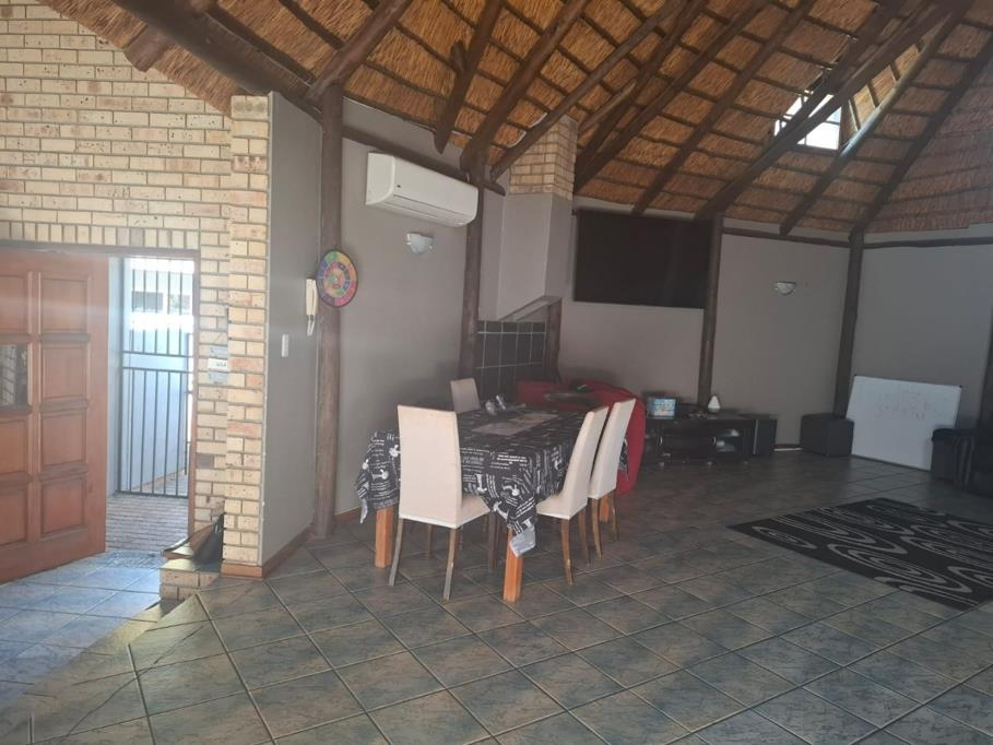 Welcome to this inviting family home, where comfort and entertainment blend seamlessly. Upon entering the entrance hall, you''re welcomed into a spacious open-plan braai room with a thatched roof, complete with air conditioning and ample space for hosting guests. Sliding doors lead out to a charming lapa and a sparkling swimming pool, which includes a protective cover.