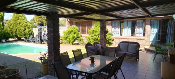 The main house consist 3 bedrooms with 2 bathrooms, lovely open plan kitchen with a scullery / laundry, open plan dining room and lounge with a fireplace, tiled flooring and door open to the entertainment area with a sparkling pool and well maintained garden. There is 3 self catering rooms with en suite bathrooms.