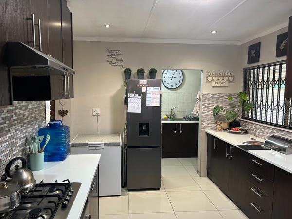 Enjoy a spacious open-plan lounge with a cosy fireplace that flows seamlessly into the dining area. The modern kitchen, fitted with gas plates and a separate scullery, ensures both convenience and style.