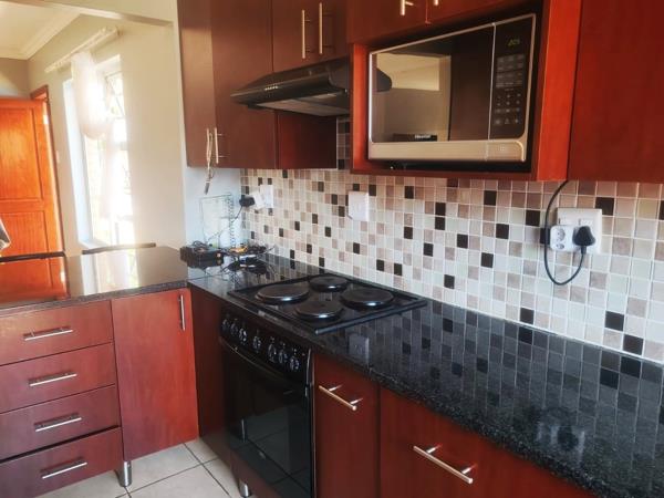 This three bedroom, two bathroom unit in the popular complex in Pentagon Park is on brand new sole mandate with RE/MAX. The open plan living area has enough space for a dining table as well as a tv room, and the outside door leads to the north facing louvred stoep with built-in braai.