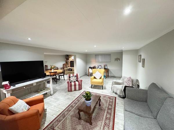 The home boasts three reception areas a tiled dining room with sliding doors, a tiled TV room, and a spacious braaientertainment room with a built-in braai and sliding doors leading out to a covered patio and neat garden, ideal for family gatherings.