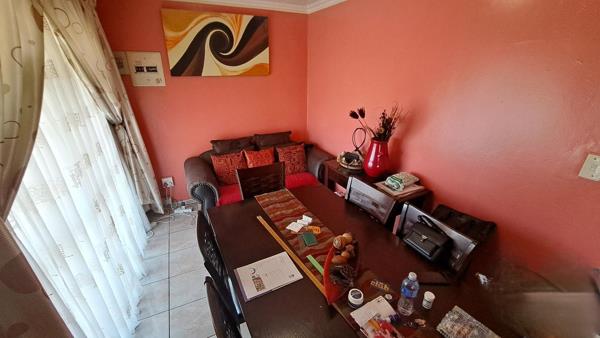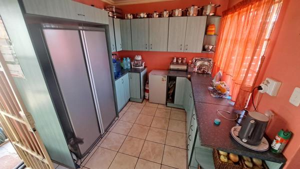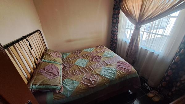 1 bedroom with full built-in cupboards, all rooms neatly tiled floors, ceiling, burglars on windows and doors.