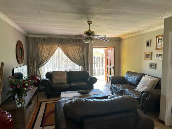 Enjoy a seamless flow in the open-plan kitchen and lounge, complete with a fireplace. The single garage provides secure parking, while security beams around the yard offer you and your family peace of mind.