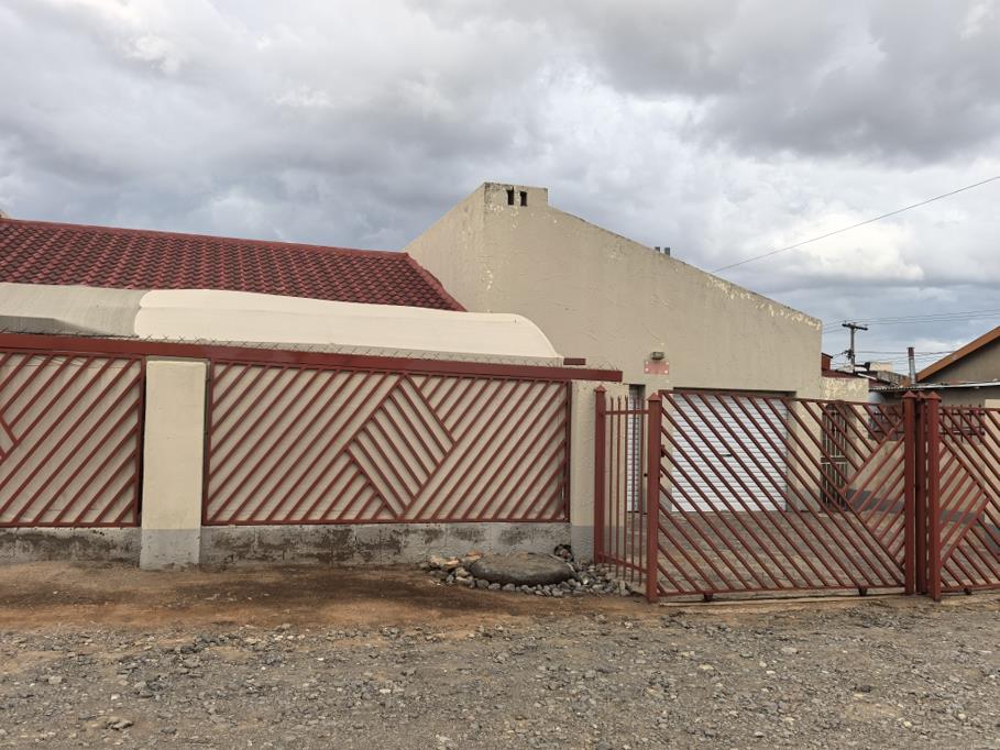 Spacious corner house near the main road with a double garage and carport for at least two more cars. It features 3 bedrooms with built-in cupboards, an open-plan lounge and dining area, and a large kitchen with ample storage, a center island, and a washing machine connection. The home has tiled floors, a fully fenced yard, and secure parking.