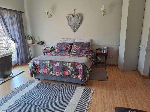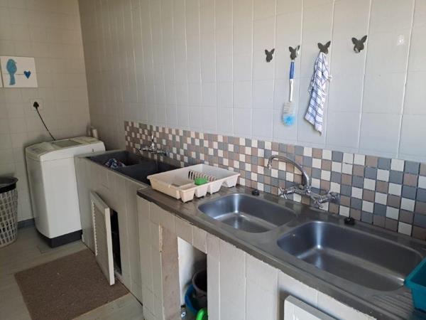 Extras include an outdoor braai area under a beautiful Karee tree, a sparkling swimming pool, air-conditioning, a roof fan, and a water tank fitted with a pressure pump to supply the home during water shortages.