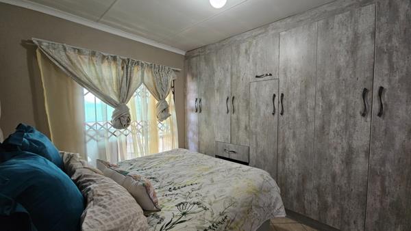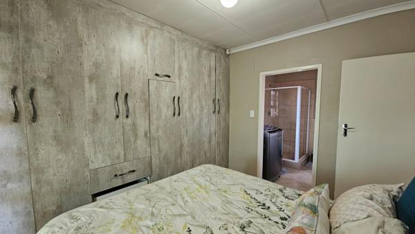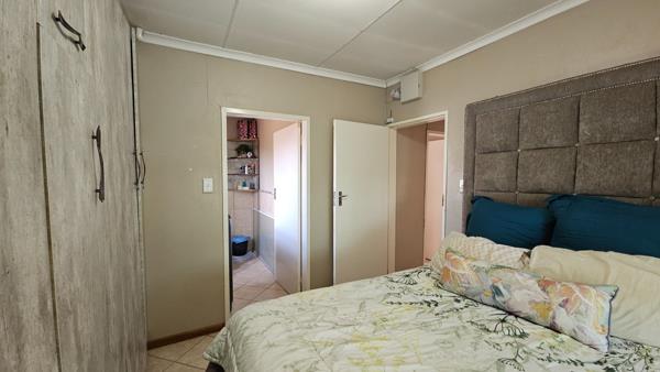 This fairly new home offers a fantastic living experience with three spacious bedrooms, each featuring built-in cupboards for ample storage. The main bedroom boasts an en-suite bathroom with a shower, toilet, and basin, providing a serene retreat.