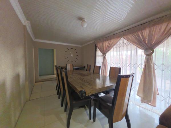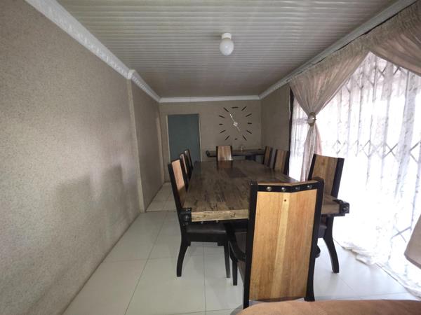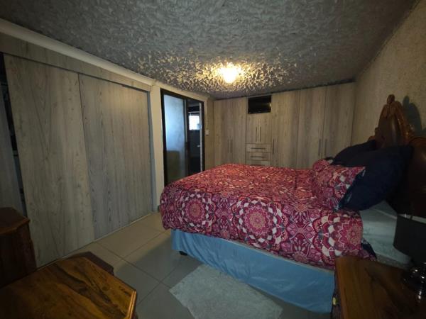 Outside, the property offers two secure garages, an external dual storage unit ideal for extra space or tools, and an outside toilet for added convenience. The yard is fully fenced, pet-friendly, and equipped with burglar bars for your peace of mind.