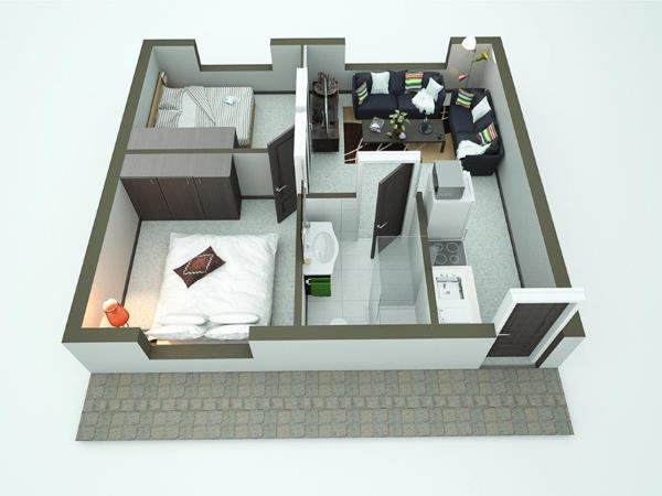 The well-designed kitchen offers practicality and flow, making it ideal for both casual meals and hosting guests. A neat and modern bathroom completes the interior, adding to the homes overall appeal.
