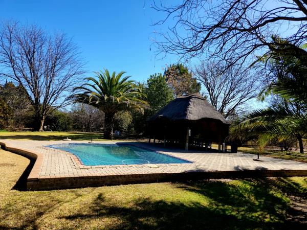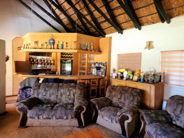 There is also a Big lapa with a beautiful swimming pool and 2 boreholes with a beautiful, massive thatched roof