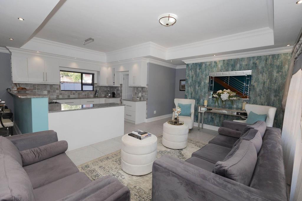 Upstairs, an additional living area with a built-in braai opens onto a large patio, perfect for relaxing or entertaining. The home features 4 bedrooms, including a spacious main bedroom with a full en-suite bathroom and two other bedrooms sharing a full bathroom. A guest bedroom with an en-suite bathroom is conveniently located on the ground floor. Outside, an additional flatlet with its own bathroom offers flexibility for guests, tenants, or a fifth bedroom.