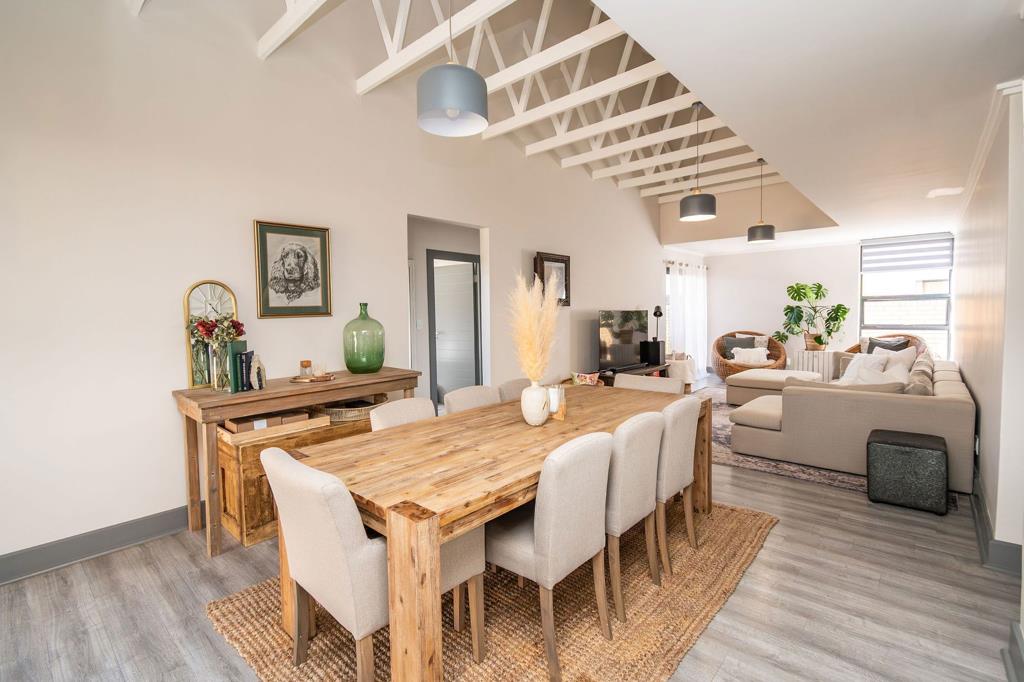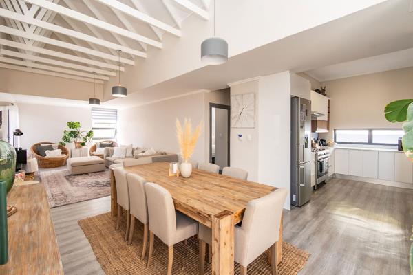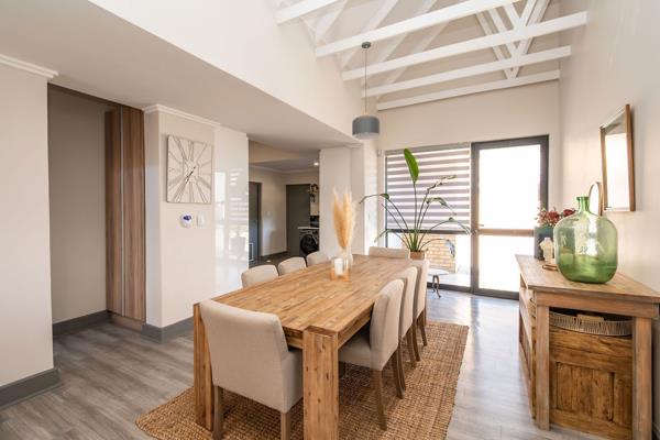 An undercover patio leads out to a low-maintenance garden perfect for family gatherings, entertaining friends, or simply enjoying a quiet evening. Added conveniences include a gas geyser, prepaid electricity, and a double garage with automated doors, along with two extra guest parking bays.