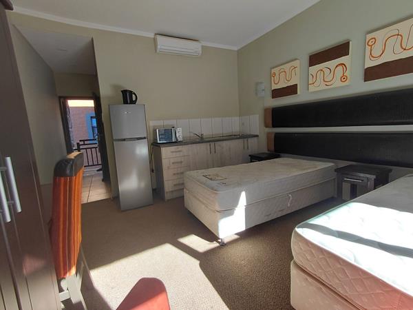 Step into a bright open-plan living area that flows onto a private balcony perfect for relaxing or enjoying your morning coffee. The bedroom offers built-in cupboards and is serviced by a sleek bathroom with a shower, basin, and toilet.