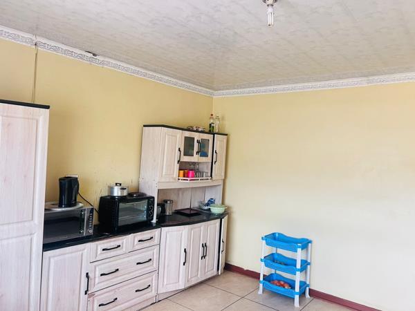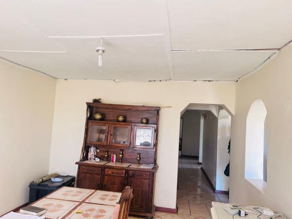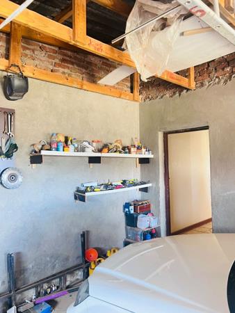 This lovely house have 3 Bedrooms, 2 bathrooms , main en suite must still be completed . Kitchen with built ins , stove and washing machine connection . Then there''s a open plan lounge and dining room. 2 x double, manual garages, one not fully completed. Outside toilet.
