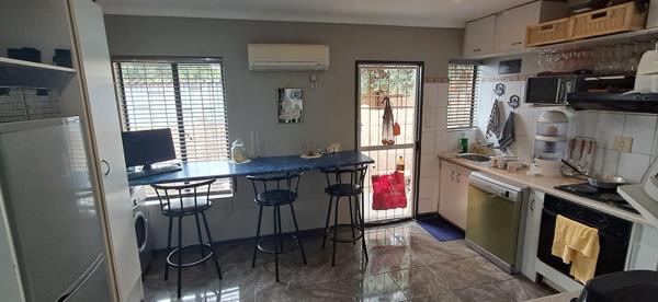 Step into luxury living as you enter this exquisite 3-bedroom townhouse through the sliding doors the dining area that leads in to the walk-in closet that provides convenience and leads you to the courtyard. From the dining area, seamlessly transition into the open-plan kitchen and living area, where modern amenities await. The kitchen features an air conditioning unit and a back door leading to the courtyard.