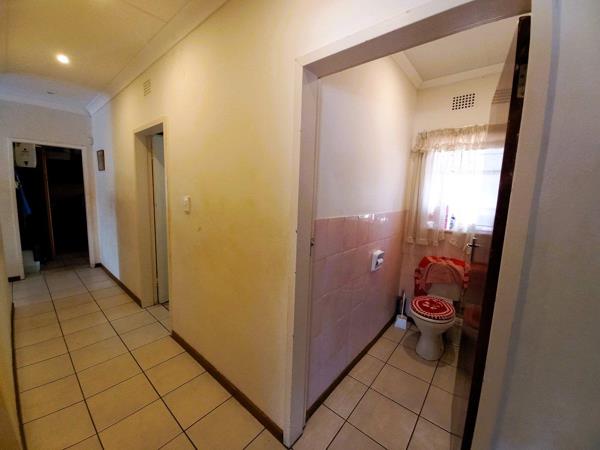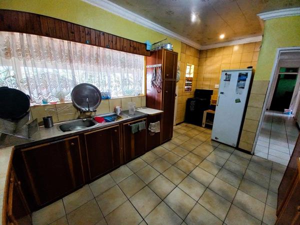 Exclusive to Metro Real Estate. This well-maintained home features a spacious yard with a motorized gate, two double carports, and a single garage. Inside, the property is fully tiled, while all 3 bedrooms feature laminated floors and built-in cupboards. The open-plan lounge and dining area is currently subdivided but will be restored to its original layout, creating a flowing living space.
