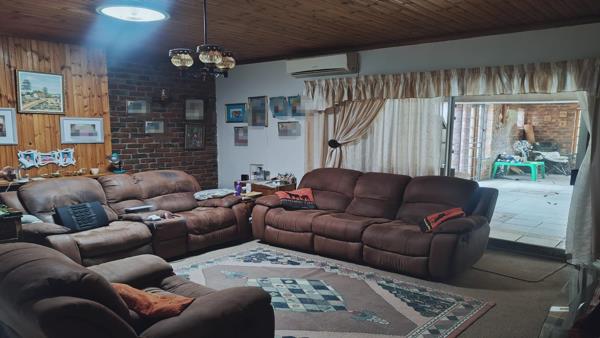 The living areas are expansive and ideal for both everyday living and entertaining, comprising a large lounge with a furnace as well as an entertainmentbraai room fitted with a built-in braai and ample space for hosting guests.