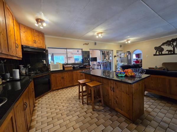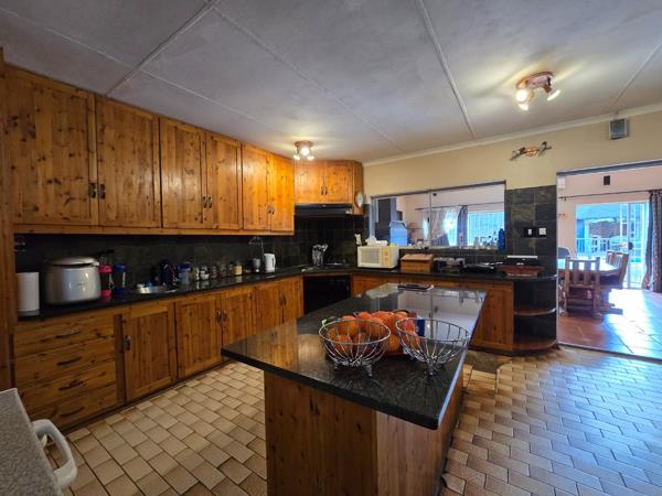 The heart of the home is the open-plan second lounge and kitchen, complete with a fireplace for cozy winters, solid Oregon wood cupboards, granite countertops, a large pantry, and a separate scullery/laundry. Entertainment is effortless with a braai room that includes a bar and dining area space, opening to a large garden with a fenced-off pool and thatched lapa. Additional extras include staff quarters with a bathroom, a double garage, double carport, and a Wendy house. The garden is neat and low-maintenanceperfect for relaxed family living.