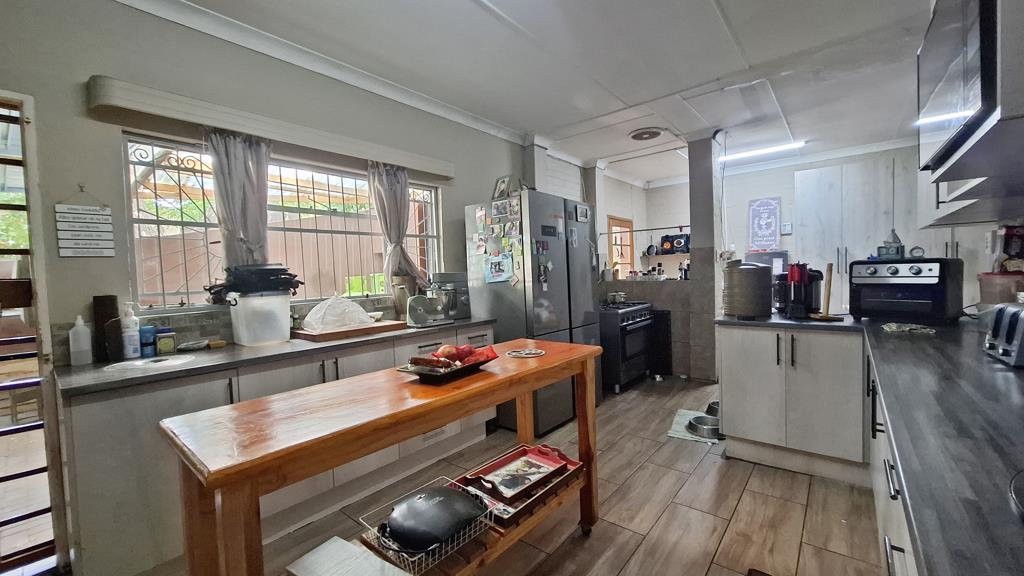 The property features a spacious patio with a built-in braai, ideal for outdoor entertainment. Additional amenities include an outside toilet, ample parking with 4 garages and 2 carports, and a borehole for household and garden use. The property also includes a 5,000-liter JoJo tank with a pressure pump, as well as a 750-liter JoJo tank for rainwater collection.