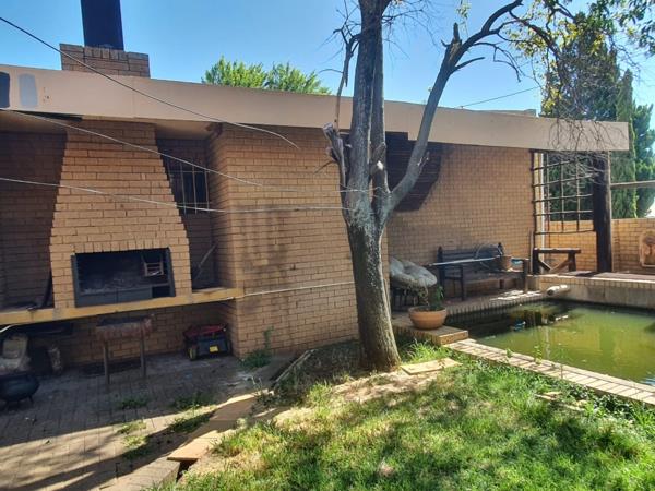 The outside area has a big front garden, and the back houses a built-in braai facility, a small pool and a fishpond.