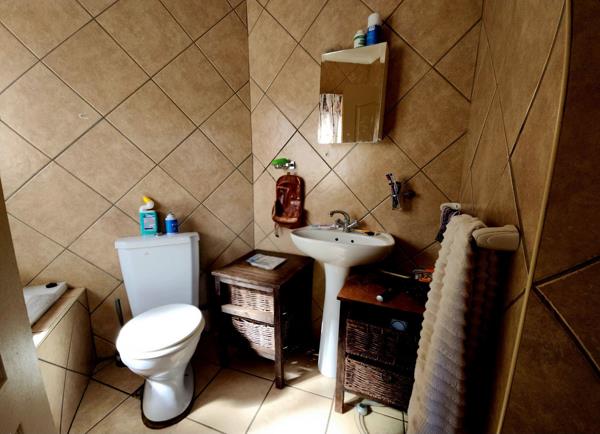 The double garage serves as an additional flatlet with its own kitchenette and bathroom Shower, basin, and toilet