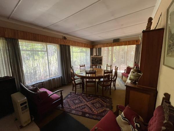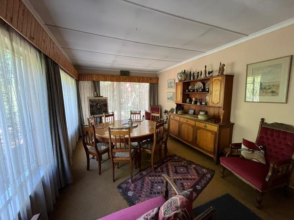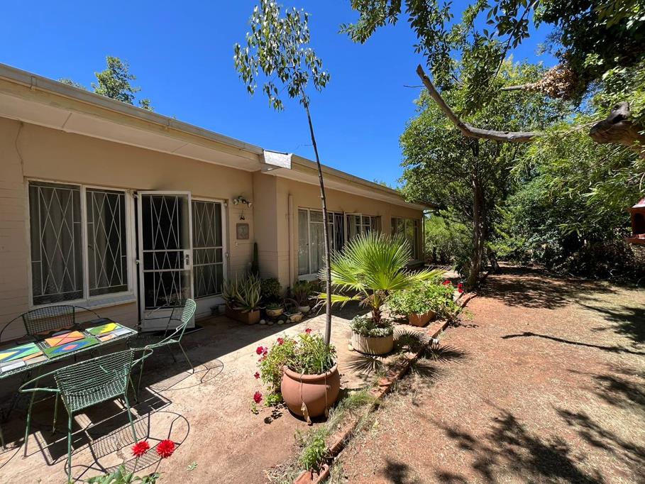 Outside, the property includes a double garage, double carport, storage area, and an outside bedroom with a toilet. The established garden with mature trees adds to the charm and privacy of the home.