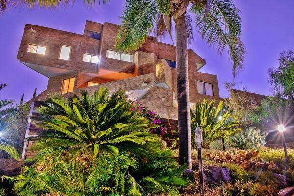 The Home offers a family room and dining room with a large family style kitchen with loads of cupboards and a pantry. This area leads out onto a patio area with access to the largest wine cellar possible. Fantastic Lounge area and entertainment area with direct access to the pool area leading out the beautiful garden set against the hill. Study at the very top of the house with the BEST view in Bloemfontein. Walk in fridge & freezer for those winter hunting trips. Bird cages on the property and the best of all.... A lift from the bottom all the way to the main bedroom!