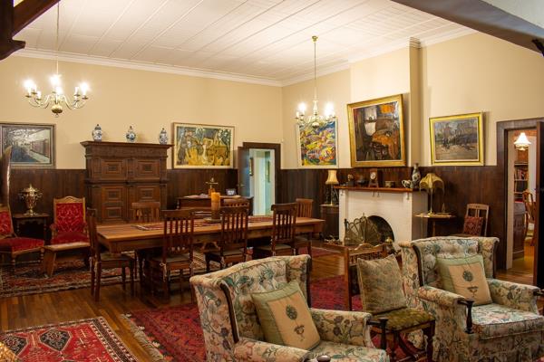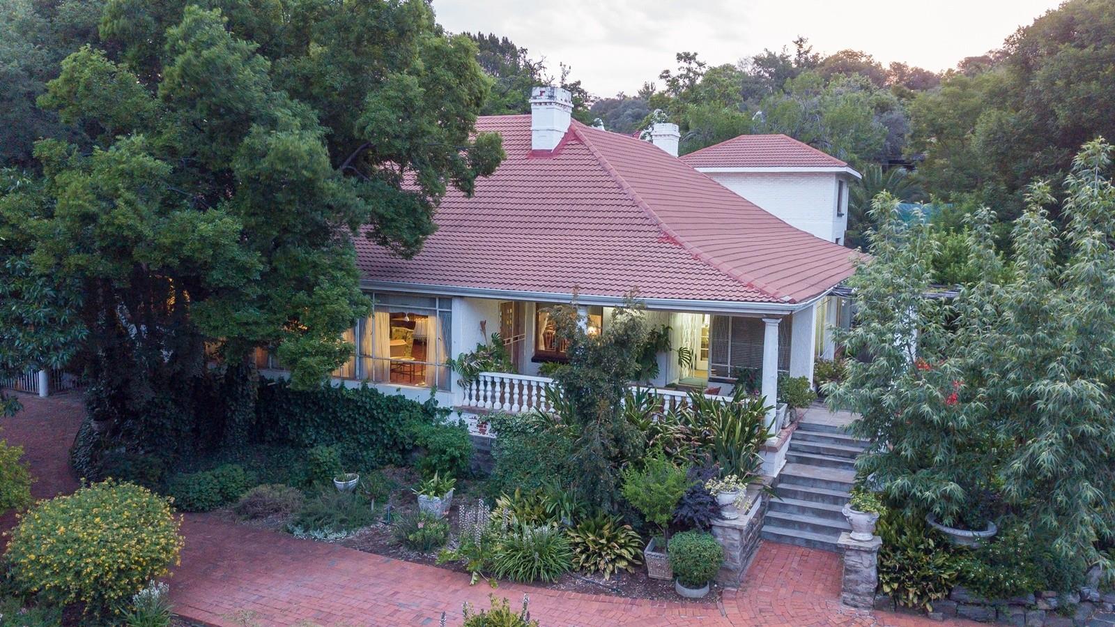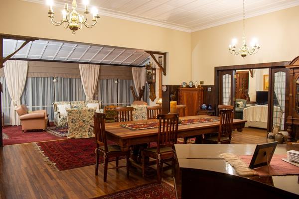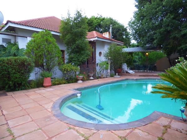 Stepping outside, a haven of leisure awaits, highlighted by a refreshing swimming pool that is complemented by a deck, offering an inviting space for outdoor gatherings, leisurely lounging and moments of tranquil contemplation. All of this is embraced by a beautiful, expansive garden with mature trees and is nurtured by the luxury of a borehole.