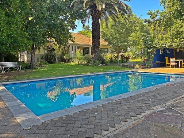 Outdoor living is a highlight, with a newly refurbished large swimming pool, an inviting entertainment area, and a lush, tree-filled garden that offers privacy and tranquility.