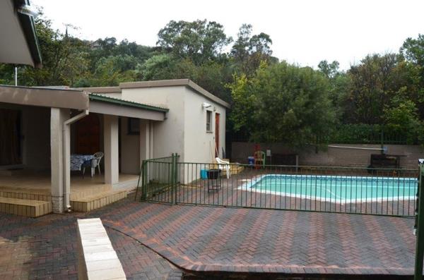 This beautiful and well-maintained 3-bedroom, 2-bathroom home is perfectly located in the heart of Westdene. One of the bathrooms is en-suite. The home features a spacious country-style kitchen, an open-plan lounge and dining area with teak floors, and a cozy TV room. A sparkling pool with a huge carport for 5 vehicles plus a lockup tandem Garage