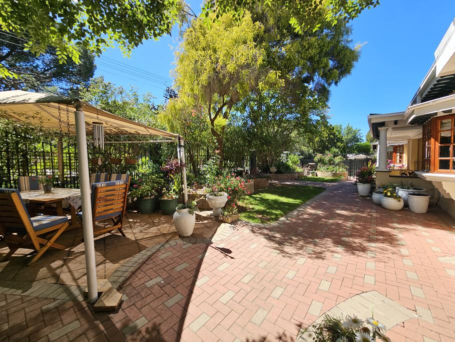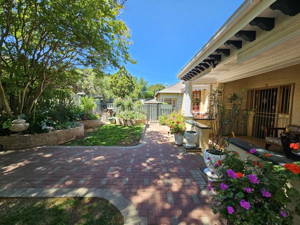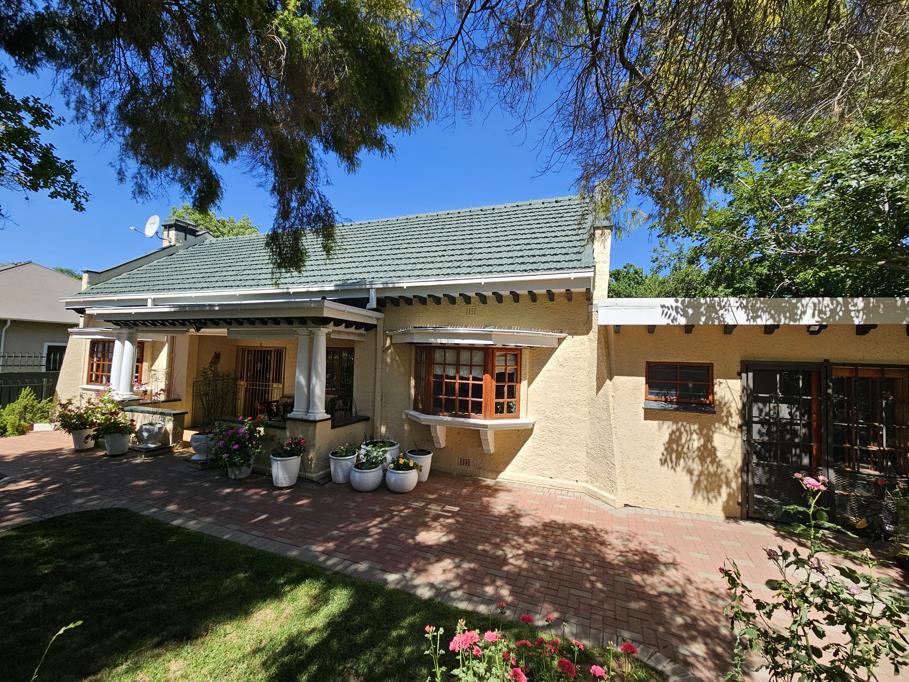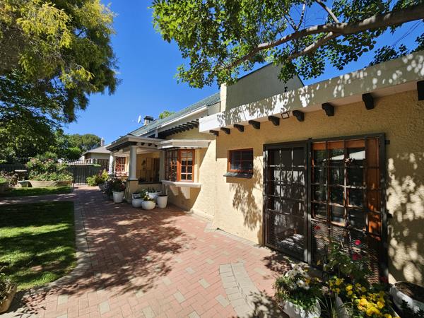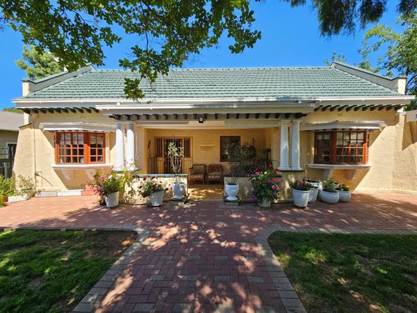 The homes wooden window frames, classic front stoep, and timeless architecture create instant curb appeal. Step inside and youll find a spacious living area with polished wooden floors, pressed ceilings, a fireplace, and a charming bay window that fills the space with natural light.
