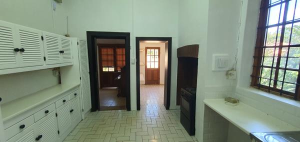 Porch Entrance Hall,4 Rooms,2 with characteristic fireplaces,1 bathroom, old school Kitchen with pantry and separate scullery. Outside the garage and storage place.High ceilings that create a fantastic atmosphere. Big windows for natural light. Beautiful renovated wooden floors and freshly painted inside. Alarm system with a beam.Prepaid Electricity. Outside Braai Area - enough space for extra secure parking at the back of the house. Tree-filled area.