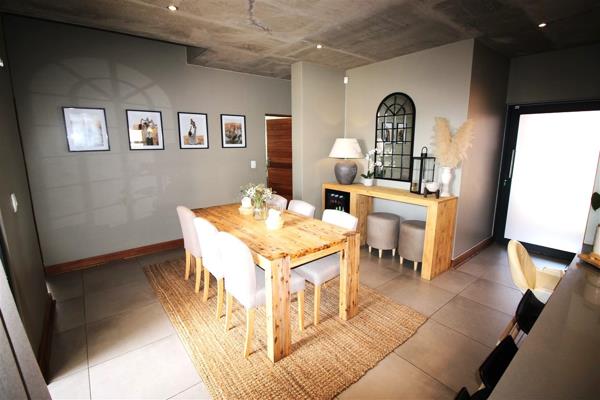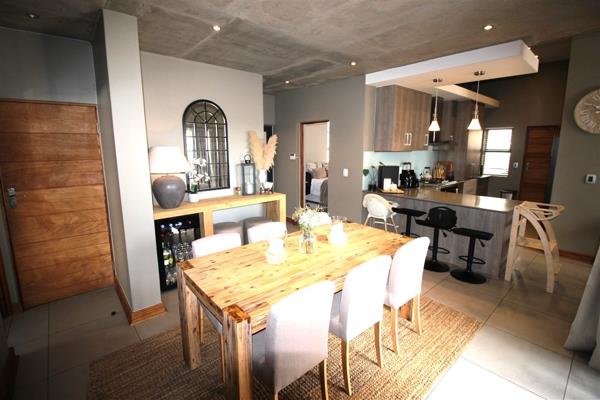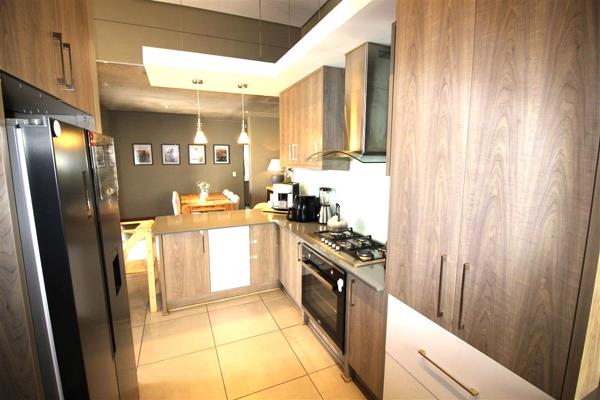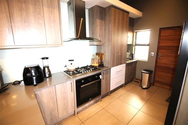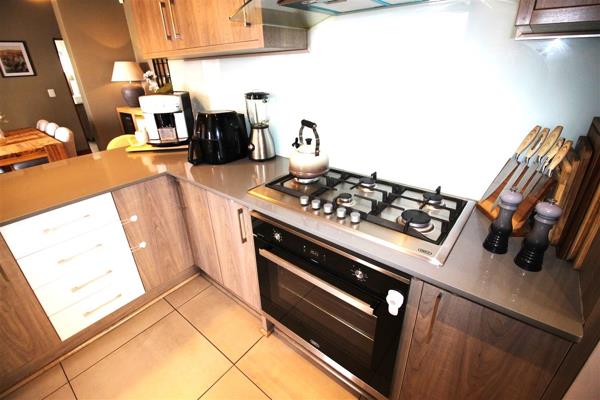 Featuring three spacious bedrooms all with built-in cupboards, and two full bathrooms. Large open plan kitchen living area with granite tops, gas hob, double eye level oven and separate washing up area. Stunning outside living area with a built-in braai.Double garage. Low maintenance garden and 2 air cons