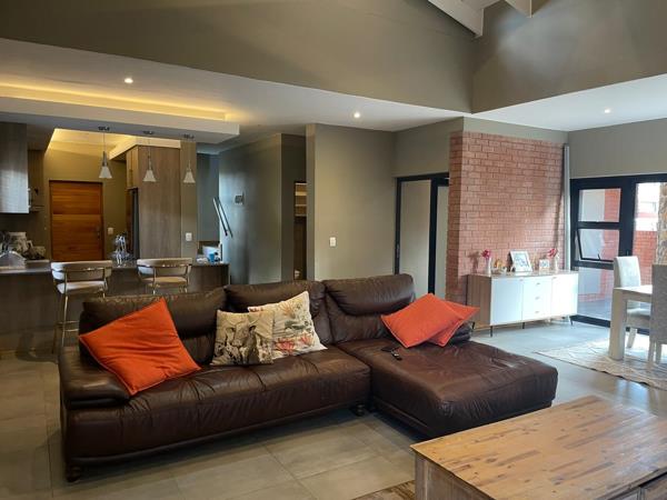 With a built-in braai and stack doors leading to the garden, the lounge area is the focal point of the house and is perfect for hosting and entertaining. With modern finishes, the kitchen is a masterpiece that blends in well with the open-concept dining and living areas.
