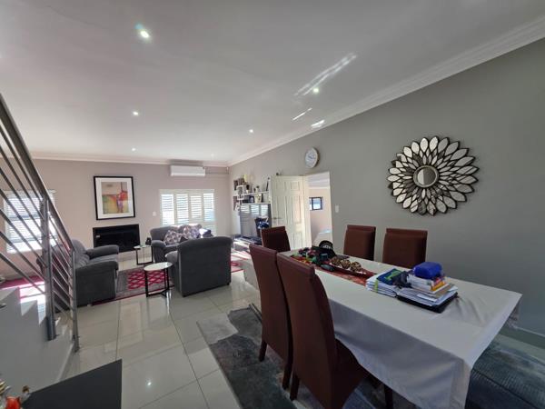 Nestled in the secure and tranquil Wild Olive Estate, this spacious 4-bedroom townhouse offers comfort, style, and functionality. The open-plan lounge, dining, and kitchen area is perfect for modern living, with the lounge featuring a cozy fireplace. Adjacent is a sunny braai room with stack doors and a built-in braai, ideal for entertaining year-round.