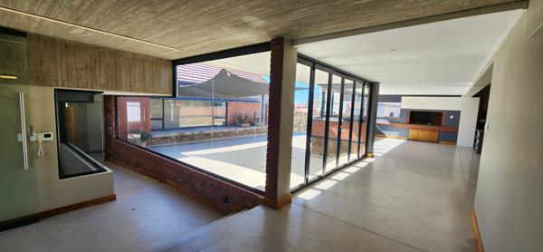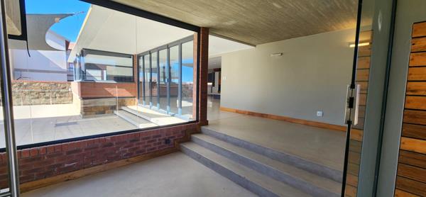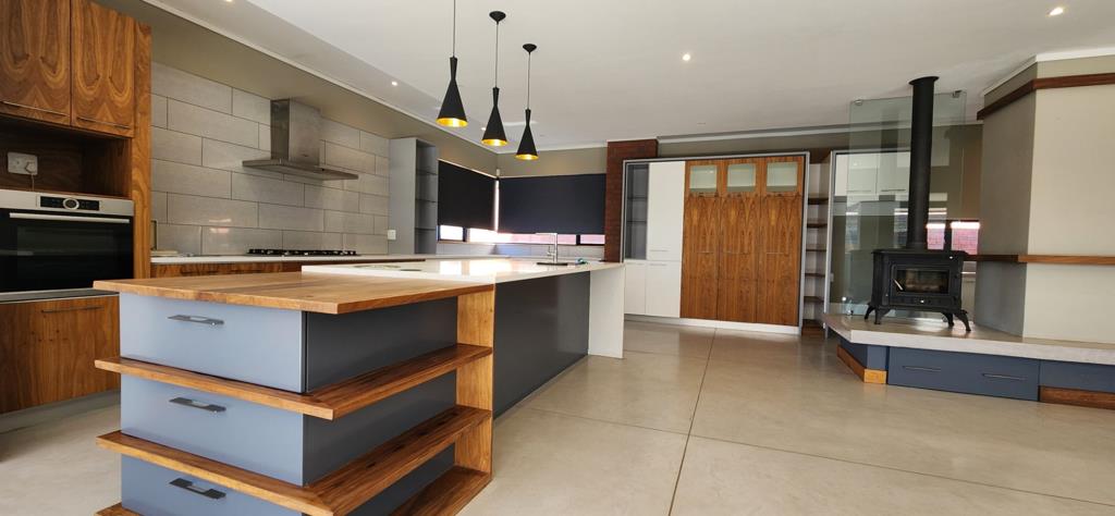 The modern kitchen is well-equipped and includes a scullery at the back. Next to the kitchen, is a built-in braai, making it easy to cook and entertain guests regardless of the weather. This entire space is designed for seamless indoor-to-outdoor living.