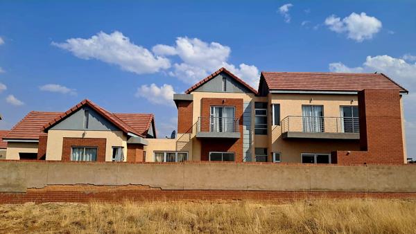 The stylish kitchen features built-in cupboards, gas/electric hob, eye-level oven, island with veg basin, and a separate scullery with full appliance connections. A walk-in pantry adds extra convenience. Upstairs, 3 bedrooms each open onto private balconies. The house is fully tiled with modern finishes throughout, and while bedrooms are not yet fitted with cupboards, the space is ready for your personal touch.