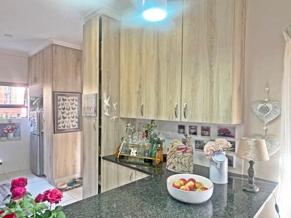 The open-plan layout and well-appointed kitchen include a separate scullery, providing ample storage and organization. Fitted with an undercounter oven, hob, and granite tops. Moreover, an open-plan livingdining room creates an inviting atmosphere, completed with an integrated braai or fireplace for cosy winter days. Perfect for family gatherings or quiet evenings in.
