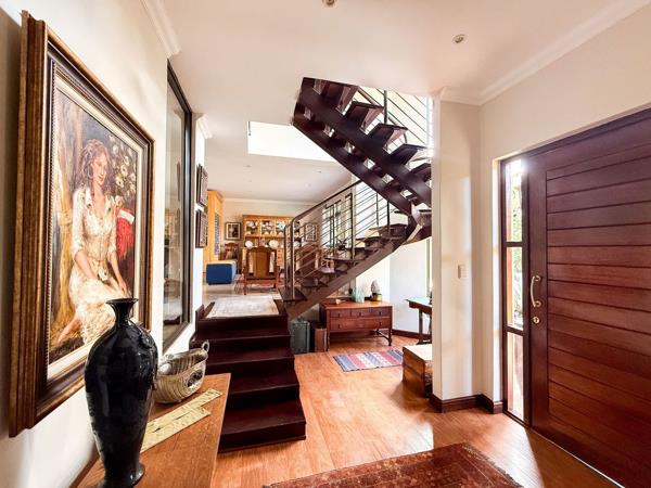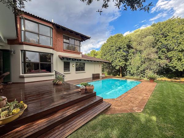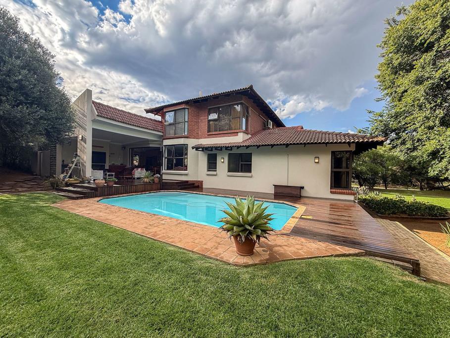 The heart of the home is the expansive open-plan kitchen, dining, living, and TV areas, creating a seamless flow and allowing the family to stay connected while enjoying generous living spaces. Frameless glass stacker doors lead from the dining area to a covered braai patio, overlooking a sparkling pool and beautifully landscaped garden ideal for relaxed outdoor living and entertaining.