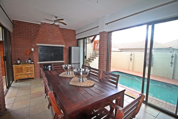 This property also offers 3 neat garages with electric doors, staff accommodation as well as an outside bathroom. The lush green garden is easy maintainable, is irrigated and is fully walled. The communal tennis court and outdoor gym are just opposite the street and the shopping center basically around the corner. This property is a great place to raise a family and definitely well-worth viewing.