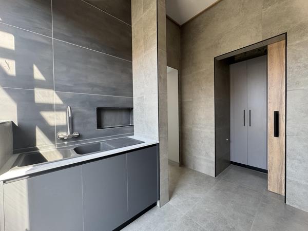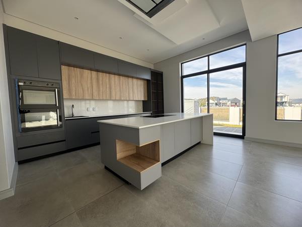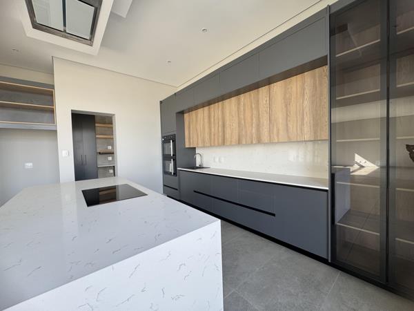 The beautifully designed open-plan kitchen is ideal for entertaining and everyday living. Featuring a large center island, separate scullery, and walk-in pantry, the kitchen is both practical and elegant and it enjoys uninterrupted views of the greenbelt, adding to the sense of calm and connection with nature.