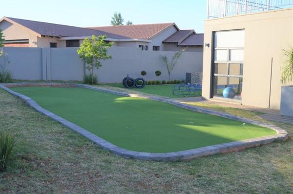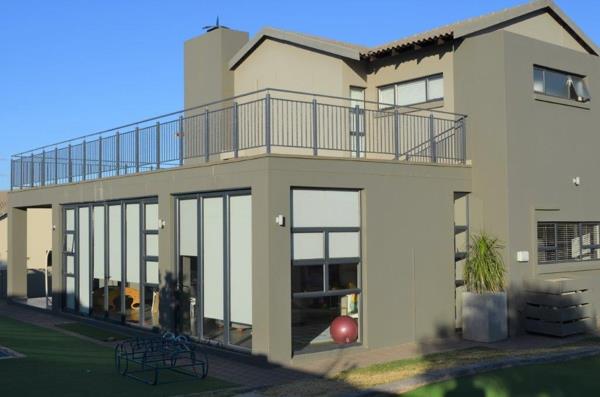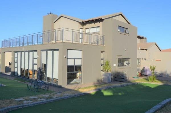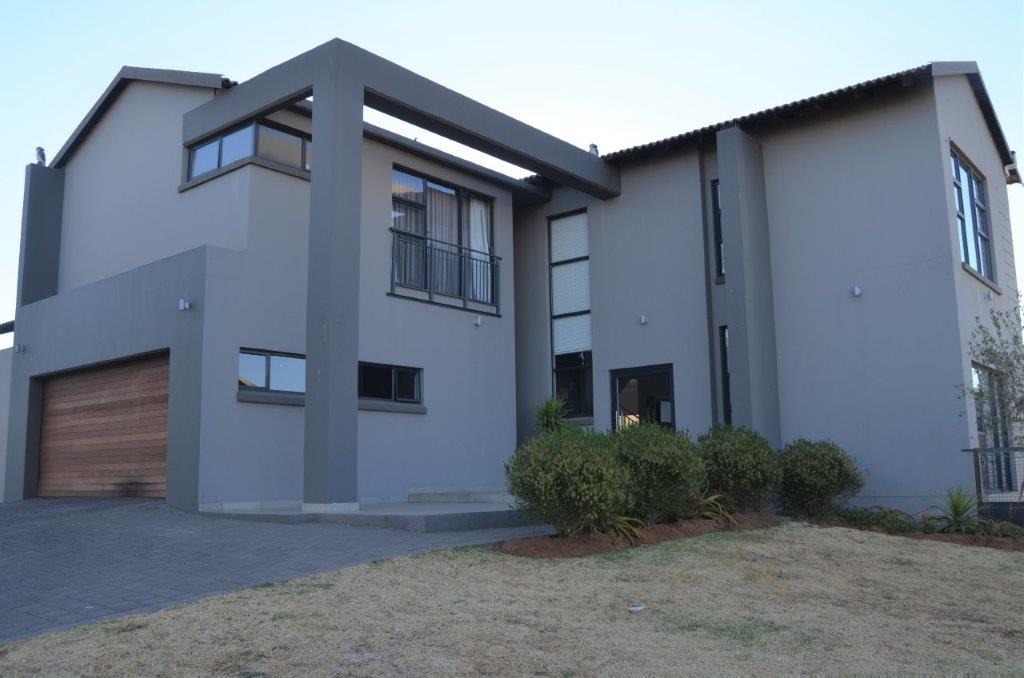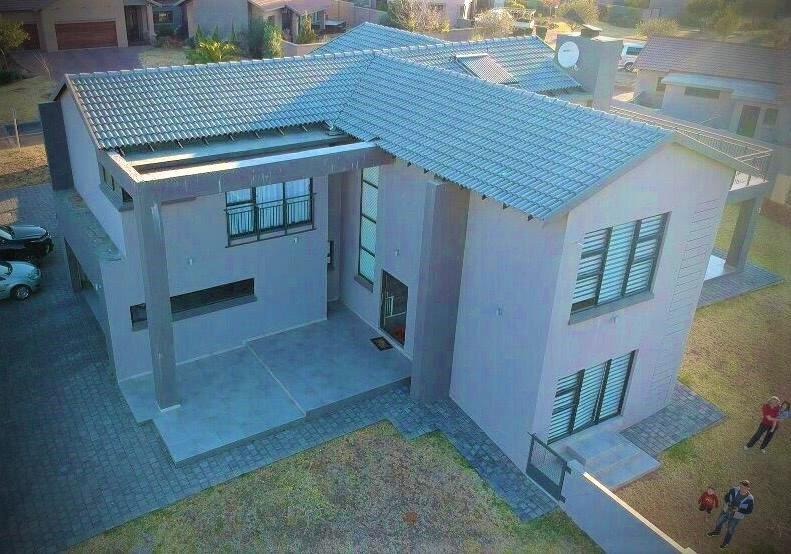 The house is designed around an open-plan concept, featuring a modern kitchen with high-gloss white cupboards and eazi quartz kitchen tops.